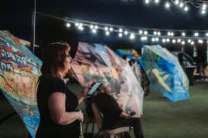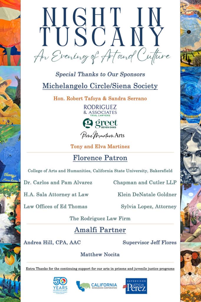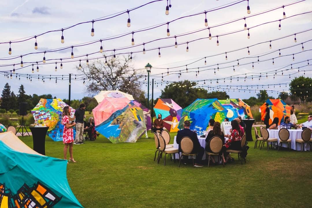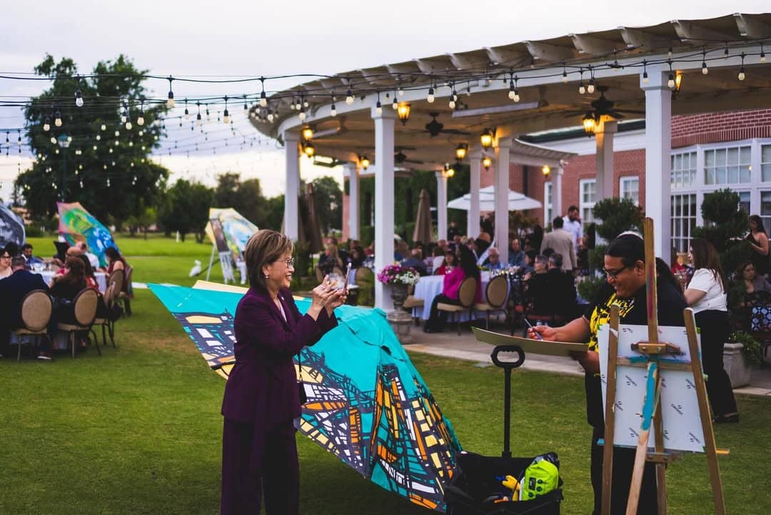 With a fantastic turnout, guests eagerly participated in the live auction of the hand-painted umbrellas, led by the talented and fast-talking auctioneer Mike Grigg. The energy was electric as bidding wars broke out and prices soared into the thousands. Throughout the evening, raffle tickets were available for purchase, with winners drawn at the end of the night for three incredible prizes: a $600 gift basket featuring a luxurious hair salon treatment, a custom mural by the esteemed Thomas Zachery, and an unforgettable six-night trip to Tuscany. To close out the evening, we shared a heartfelt moment celebrating the birthday of Arts Council Board President Tony Martinez. It was a joyful celebration of generosity and community, all in support of programs that benefit at-risk youth and individuals within our prison system.